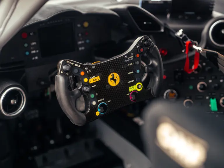 ZFF90HMB000253118 : 2020, 488 Pista Piloti, pack carbone extérieur (diffuseur av./arr., prises d’air, pare-chocs arrière, couvres-culasses), jantes 20″ fibre de carbone, échappement titane, système de levage av., rétroviseurs électrochromes, bande tricolore, n° de course 18, pack carbone mat intérieur (tableau de bord, console, seuils de portes, compartiment bagages), Cavallino brodé sur les appuie-têtes, système de télémétrie, kit caméra Track, extincteur, compte-tours à fond blanc, sièges racing Medium, harnais 4 points, Apple Car Play, système hifi Hi-Power, navigation avec Bluetooth, caméra de recul arr., Argento Nürburgring (101/C), alcantara Nero (9440) à passepoils Rosso (0504)