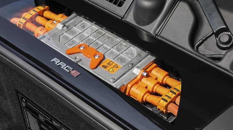 Alimentation électrique par batterie lithium-ion SK Innovation (Corée du sud) de 7,9 Kw/H constituée de 84 cellules en 14 modules soudées au laser et refroidissement par plaques latérales. Les moteurs électriques et la batterie pèsent 270 kg (72 pour la batterie seule). La batterie prend place derrière les sièges.