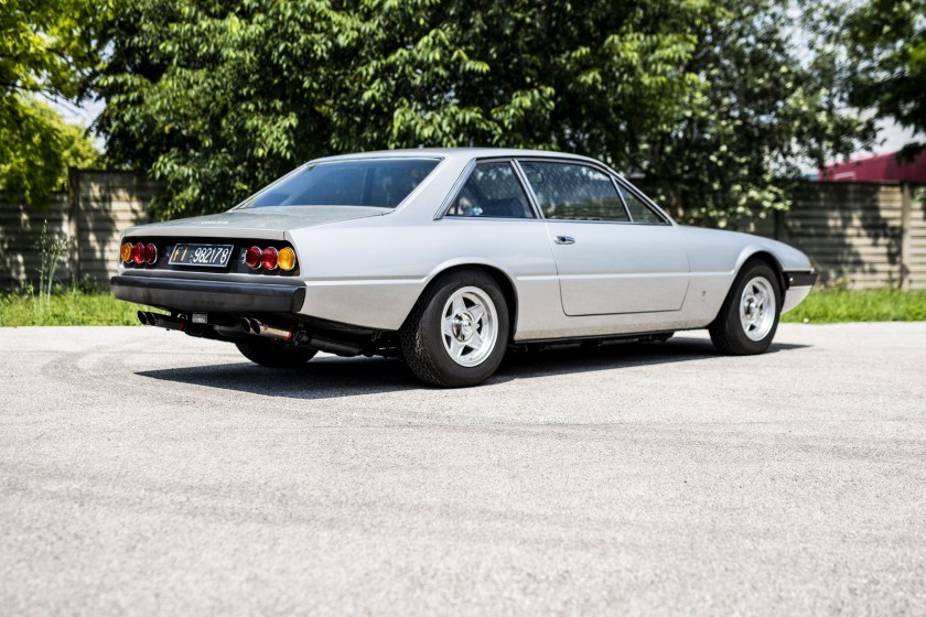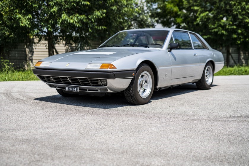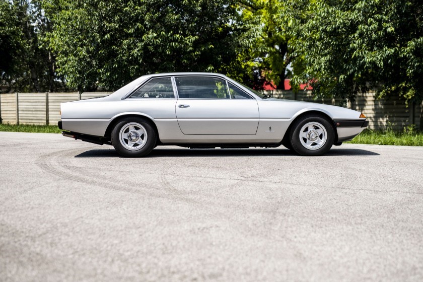 F 101AL 19709 : 1975, 365 GT 2+2, dernière de la série, moteur F F101AC00001125, Argento, cuir Nero.
