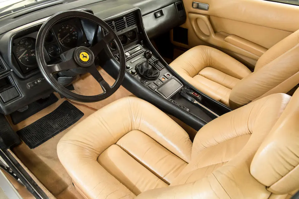 ZFFYD25B000079542 : 1989, 412i, climatisation, volant 3 branches, montre analogique Veglia, vitres électriques, sièges avant à réglage électrique, radiocassette Blaupunkt New-York, Argento Ferrari, cuir noir.