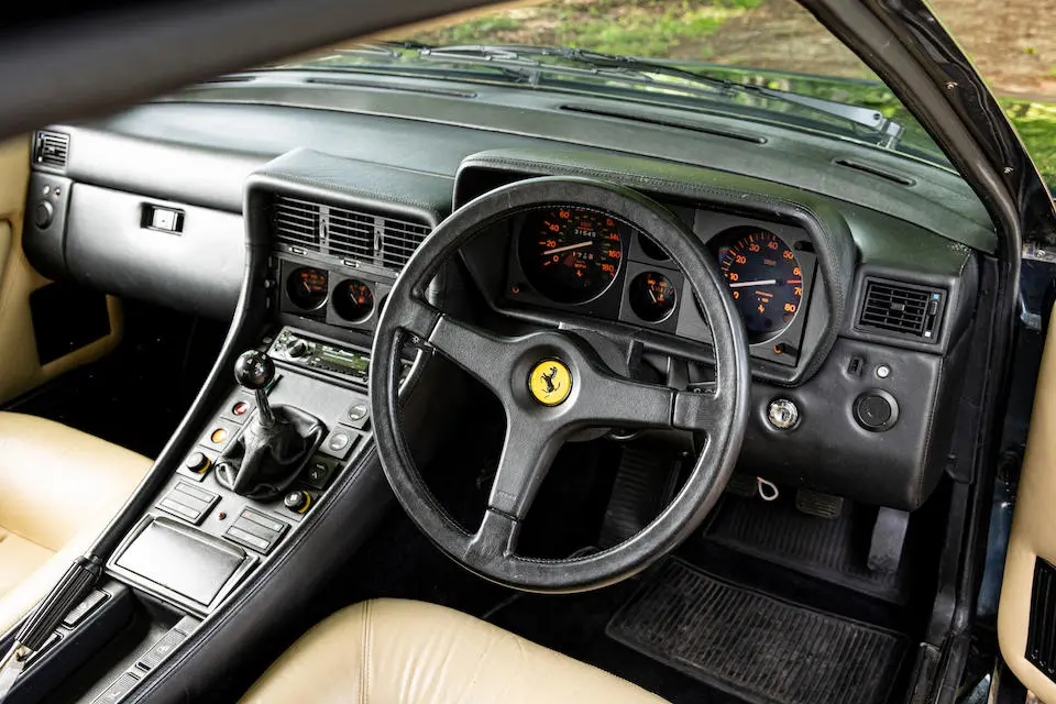 ZFFYD25C000073501 : 1987, 412GT, CAD, boîte de vitesses manuelle, Blu Medio, cuir Serbia, tableau de bord et tapis de sol Nero.