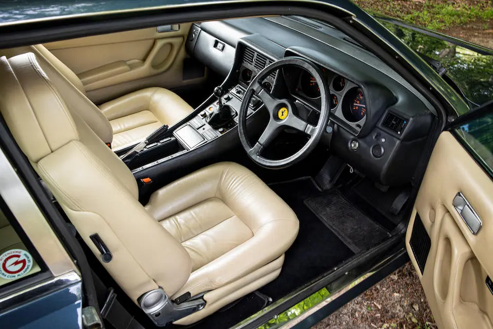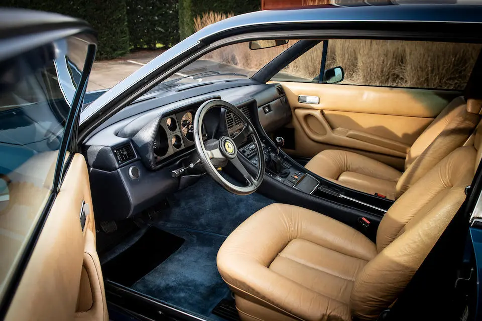 ZFFEB07B000046017 : 1983, 400 GT 2+2, boîte de vitesses manuelle, 3e siège arrière en place de l’accoudoir, Blu Ribot, cuir beige.