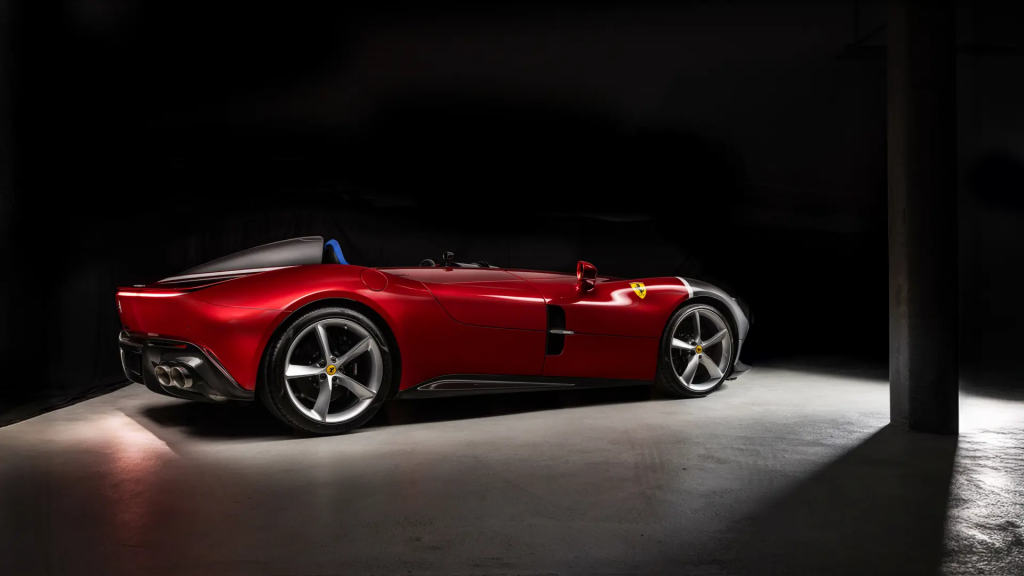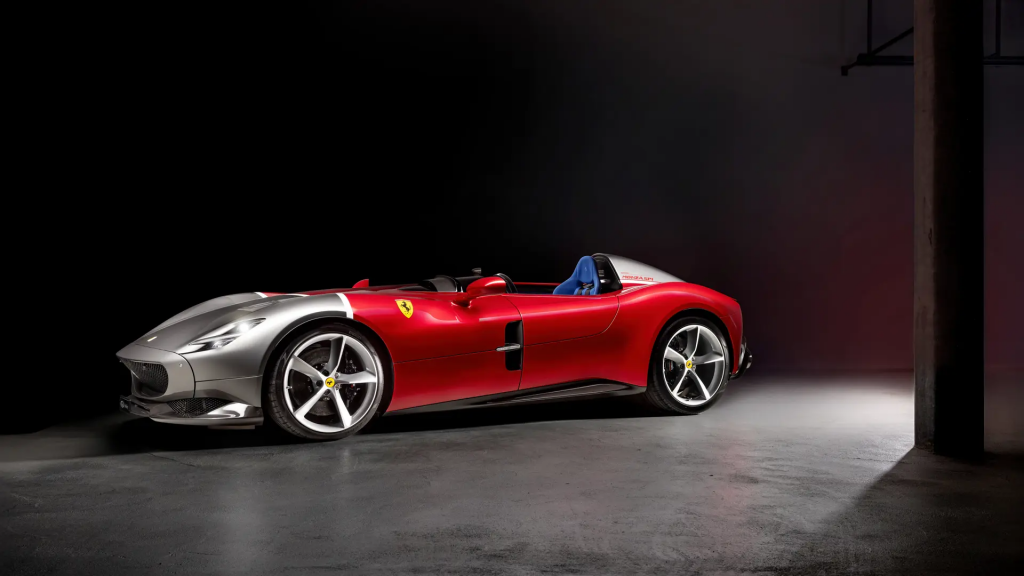 ZFF94MSB000270155 : 2021, Monza SP1, moteur 508315, boîte de vitesses 113443, emblèmes Scuderia sur les ailes, siège conducteur monocoque, étriers Glossy Nero, Caballino Blu brodé dans les appuie-têtes, intérieur fibre de carbone brillant et alcantara Nero à passepoils jaunes, Rosso Deborah/Glossy Grigio, bande Glossy Bianco, intérieur Jeans Aunde Blu.