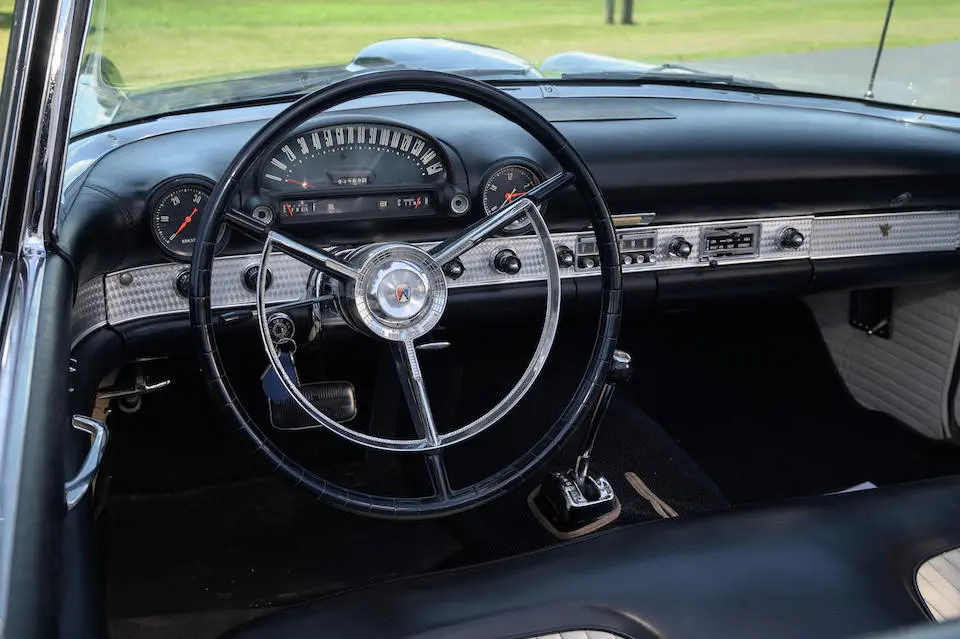 P6FH235360 : 1956, boîte de vitesses automatique, Colonial White, vinyle noir/blanc.