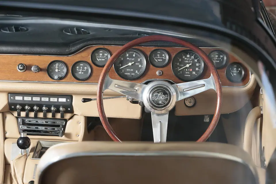 420001 : 1963, Prototype Grifo A3/L, ligne de toit et ceinture de caisse plus basses, bandeau de toit en aluminium, volant et levier de vitesses spécifiques,