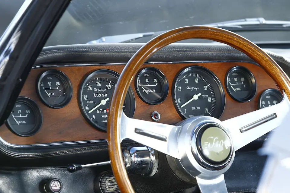 GL 140.350 : 04/07/1971, 1971, Grifo GL Targa Série II, châssis renforcé, moteur Chevrolet Corvette 5,7l 300 chevaux, boîte de vitesses manuelle ZF à 5 rapports, rapport de pont 3,31 :1, climatisation,