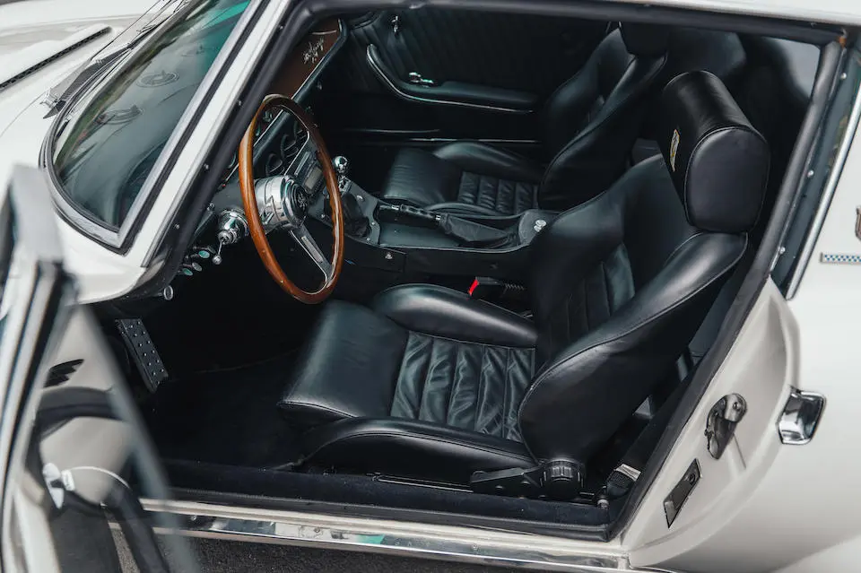 GL 320407 : 14/05/1973, Grifo GL Série II, moteur Ford Cleveland 351 ci, rapport de pont 3,31 :1, climatisation, direction assistée, Blanche, cuir rouille.