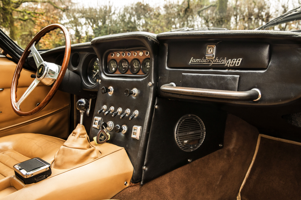 0670 : 1966, Lamborghini 400 GT 2+2, moteur 0635, Grigio Medio, cuir tabac.