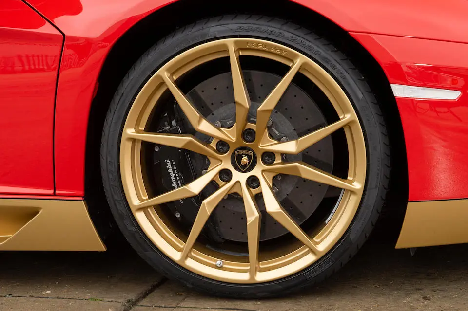 Freins carbone-céramique, jantes Dione en aluminium forgé par App-Tech 20 et 21 pouces couleurs assorties aux bas de caisse.