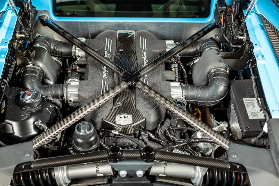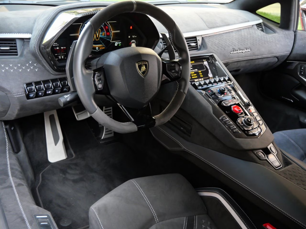 La structure en carbone complétée par des faux-châssis avant et arrière de l’Aventador SV sont repris, de même que le bloc V12 de 6,5 litres développant désormais 759 chevaux DIN à 8500 tours.