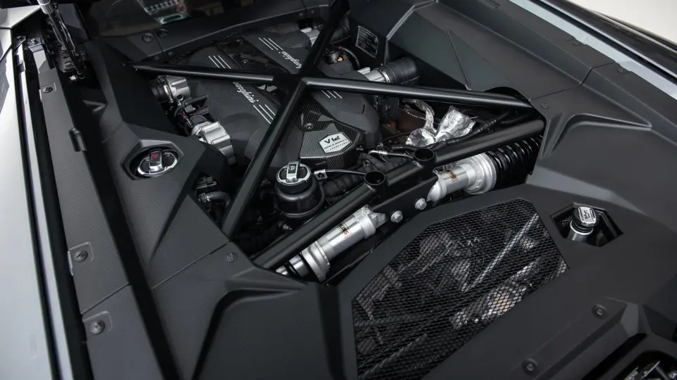 Poids abaissé à 1520 kg par utilisation accrue du carbone. Suspensions actives Aerodinamica Lamborghini Attiva couplé avec le système Lamborghini Dinamica Veicolo Veicolo Attiva 2,0 ajustant la suspension grâce à des capteurs ajustant le réglage aérodynamique en 500 millisecondes.