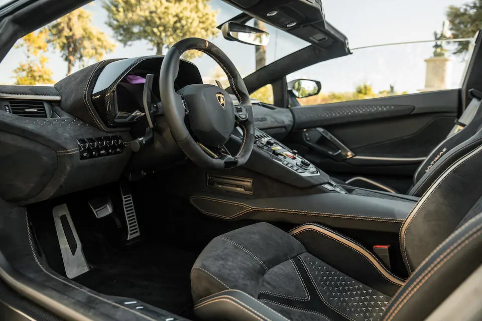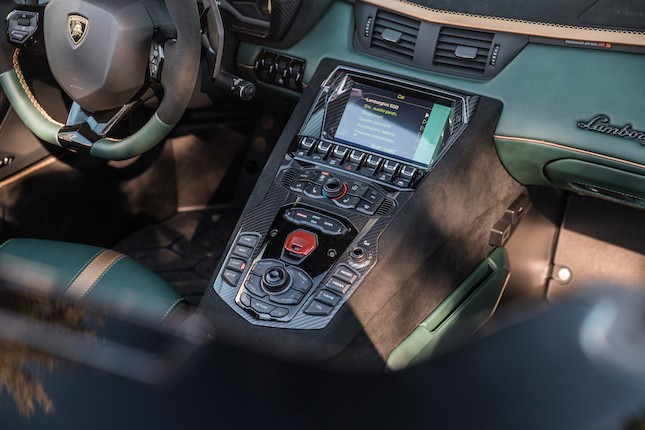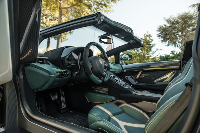 ZHWEN6ZD6MLA10532 : 2019, Aventador SVJ LP 770-4 Roadster, repose pied en carbone, volant multifonction en alcantara, boîte à gants, cabochons de roues en carbone, encadrement de rétroviseur en carbone, sièges confort chauffants à réglage électrique avec inserts en carbone, antivol Lamborghini, navigateur 3D, détecteur de pluie, ordinateur de bord, instrumentation digitale, freins en carbone céramique, caméra de recul, aide au parking, système hifi Lamborghini Sensonium, jantes 20 et 21 pouces couleur bronze, étriers noir brillant, feux LED,