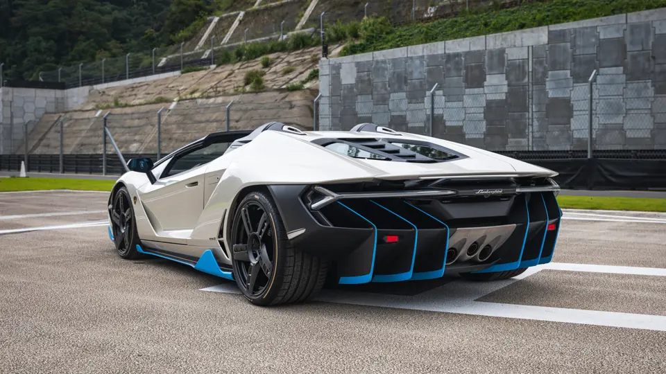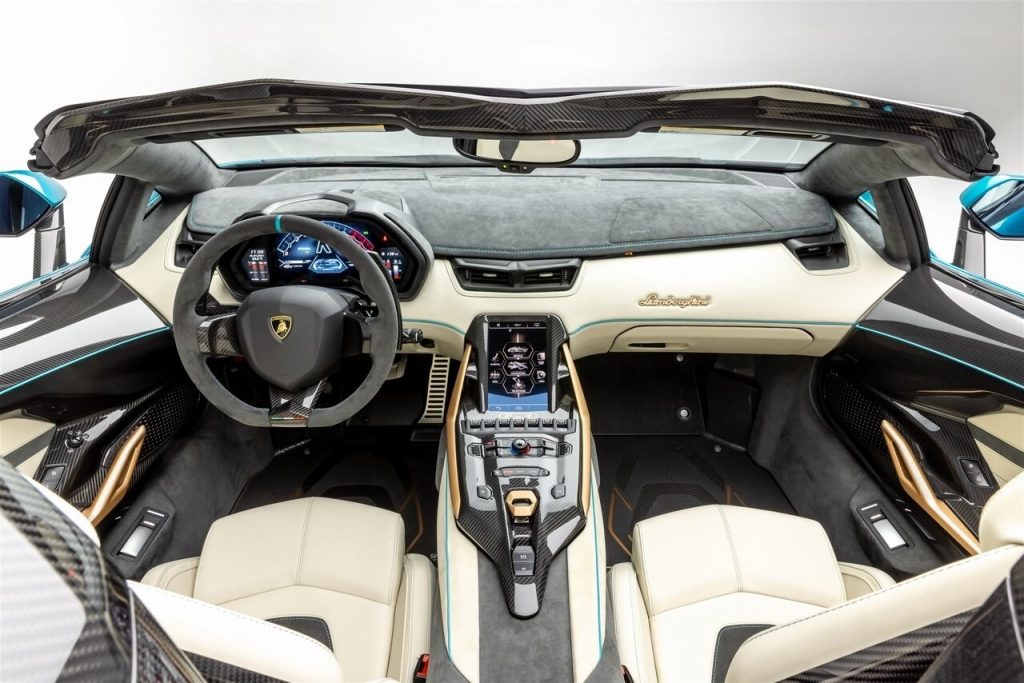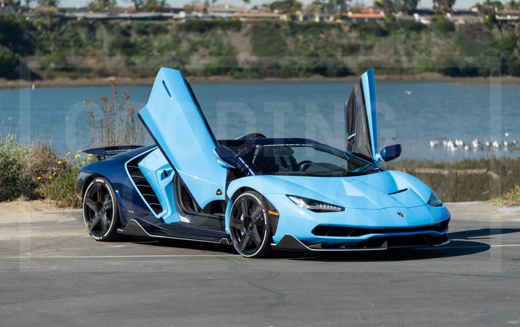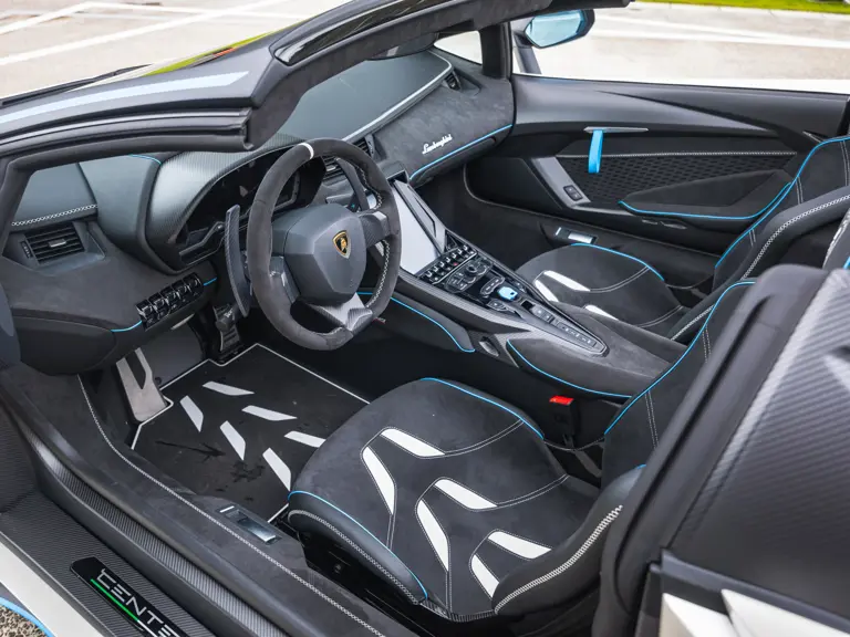 ZHWUZ5ZD3HLA06826 : 2017, Aventador Centenario Roadster, 1/20, pare-chocs, étriers argent, éclairage LED av./arr., ouïes latérales, cabochons de roues, hardtop et bas de caisse carbone, couvre culasse carbone/fibre de verre, tableau de bord, armature des baquets, seuils de portes, logos, palettes de changement de vitesse, poignées de porte en carbone, système de télémétrie par caméras, volant alcantara, Cephaeus Blu/Hera Blu, filets argent, intérieur Nero Ade.
