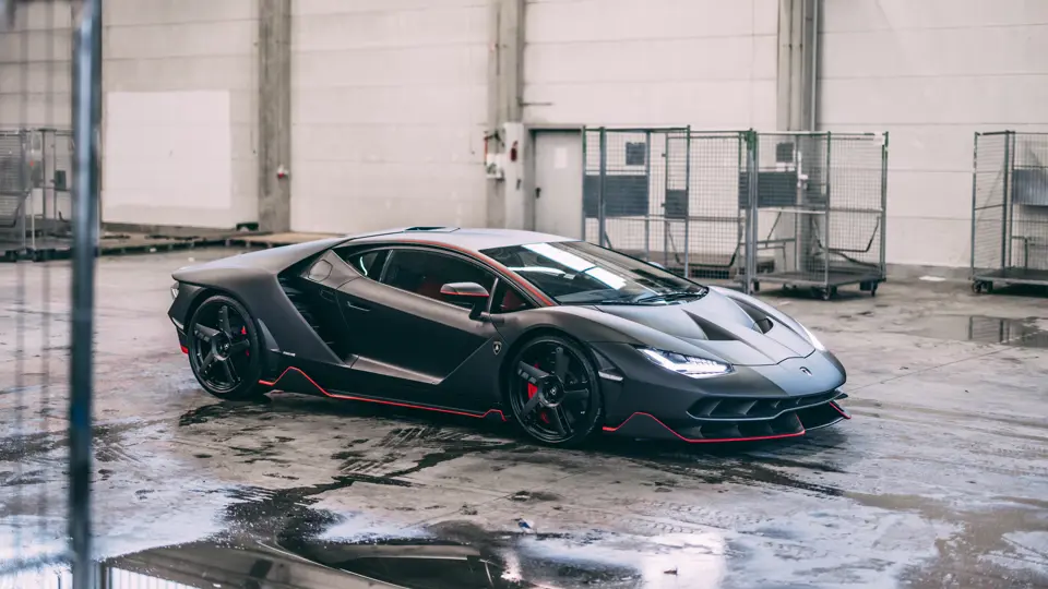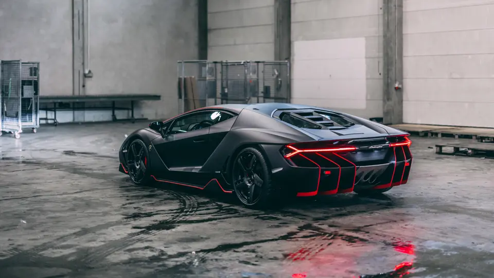 ZHWEY5ZDXHLA05843 : 2017, Aventador Centenario LP770-4, 1/20, Noir mat, filets rouges, intérieur rouge/noir.