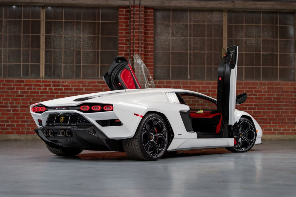ZHWUA9ZD5NLA11486 : 2022, Countach LPI800-4, pack carbone-1 (diffuseur avant, rétroviseurs extérieurs, prises NACA, extracteur arrière, couvre-culasse), jantes noires 9×20/13×21, étriers et cabochons de roues rouges, Bianco Siderale, cuir Nero Ade.