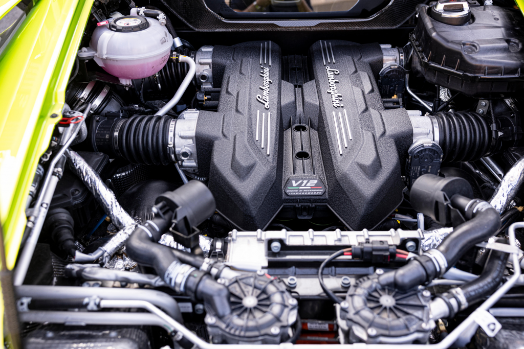 La Revuelto utilise le bloc V12 ouvert à 60° de la marque en position centrale longitudinale. Le bloc a pivoté de 180° pour s’accommoder des moteurs électriques.