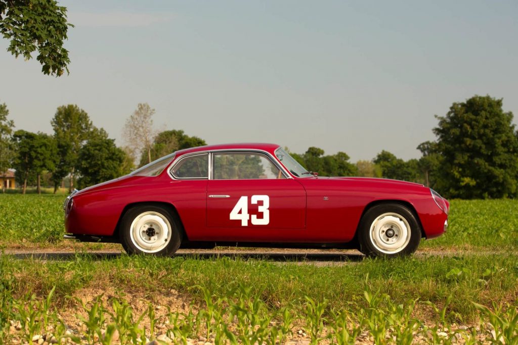 82400-1011 : 1959, Flaminia Sport 2,5l Zagato, phares carénés, 1/99, 3 carburateurs Weber, vitres latérales et lunette arrière en Perspex, sièges baquet.
