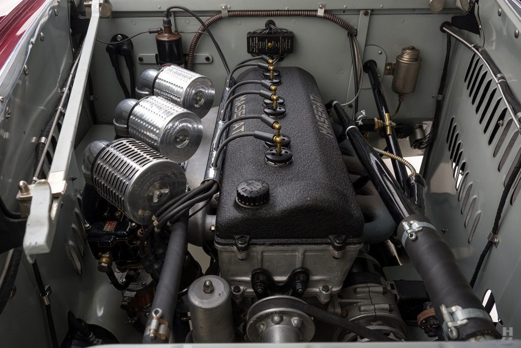 6 cylindres en ligne positionné en arrière de l’axe des roues avant en position presque centrale, culasse détachable (Testa Riportata) dérivé du bloc 6CM d’avant-guerre.