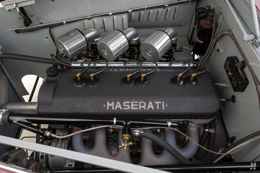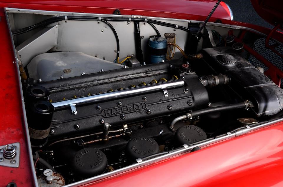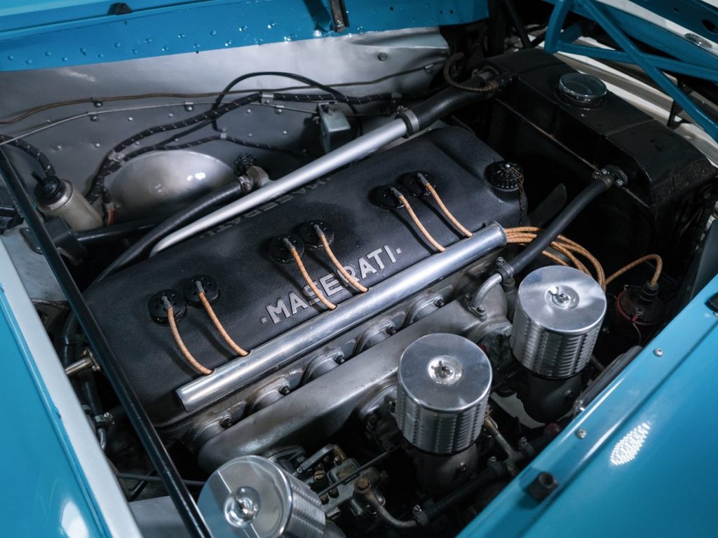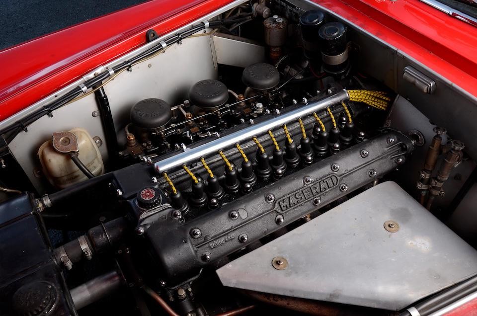 Distribution par 1 arbre à cames en tête (1ère Maserati à ne pas disposer de 2 arbres à cames en tête).