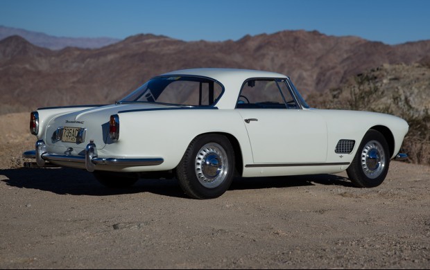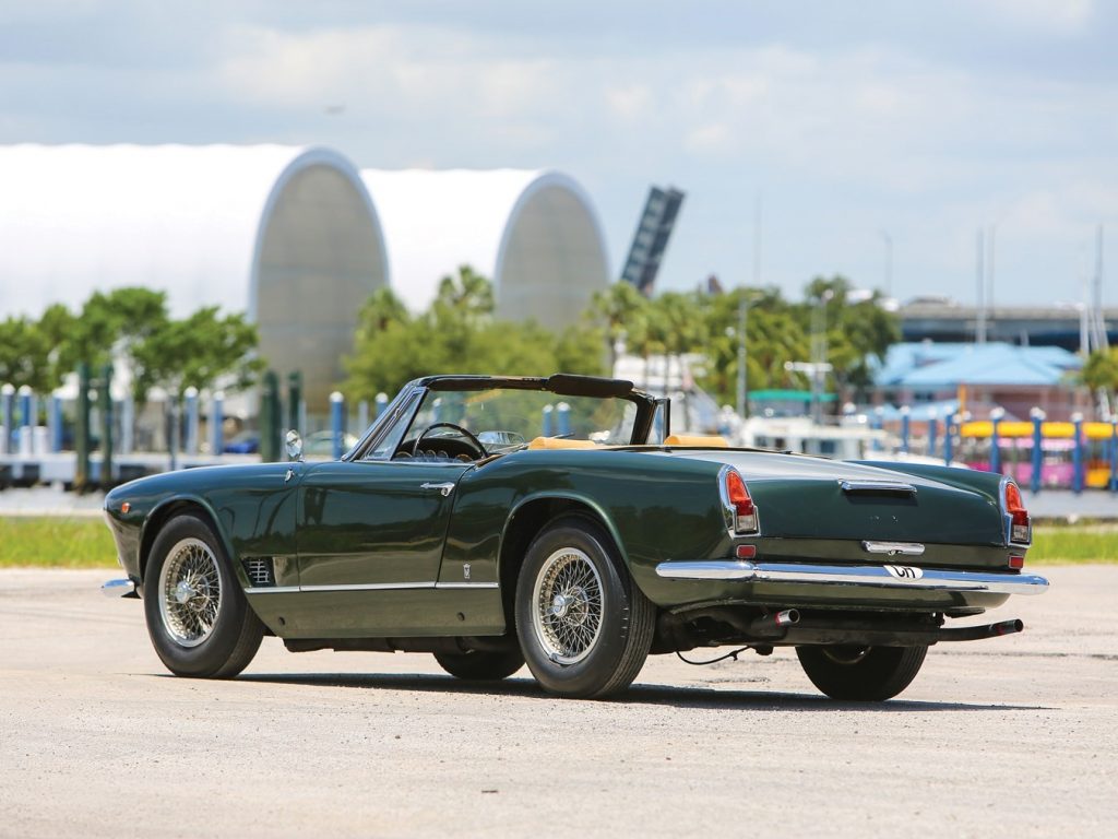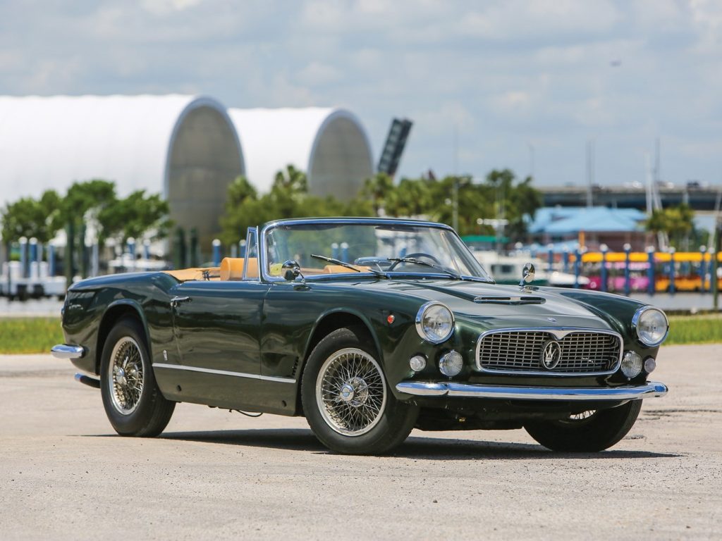 1959 : Présentation du cabriolet carrossé par Vignale (Michelotti). Empattement raccourci de 2,60 à 2,50m. Carrosserie en tôle d’acier reprenant globalement la face avant du coupé Touring mais avec des flancs inclinés vers l’arrière.