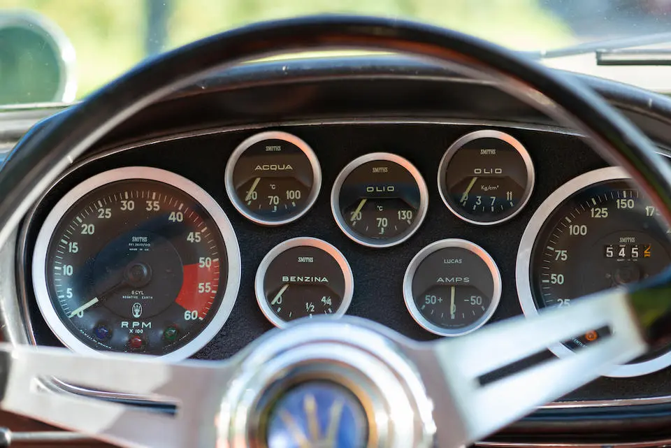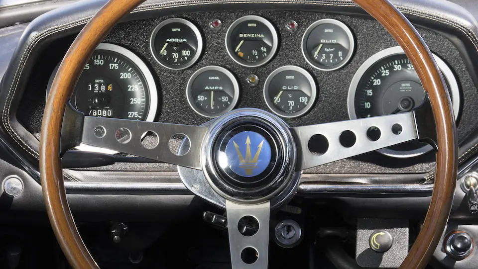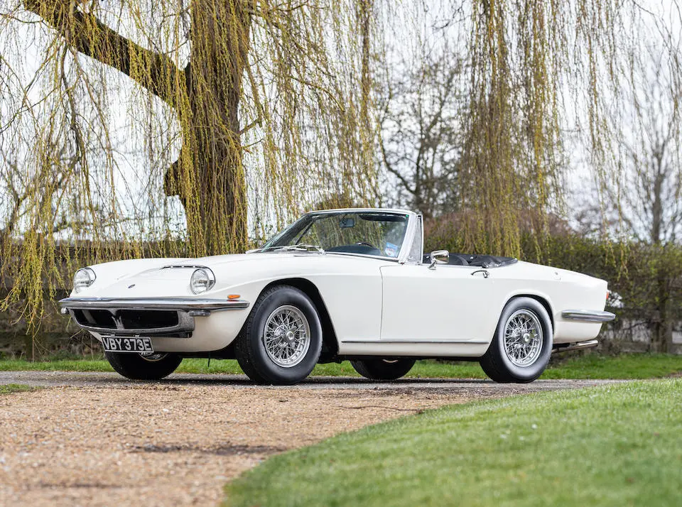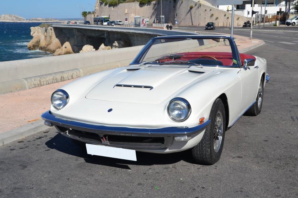 AM 109/SA/1737 : 1970, Mistral Spider 4,0l, blanche, cuir noir, CAD, instrumentation Smiths et Lucas.