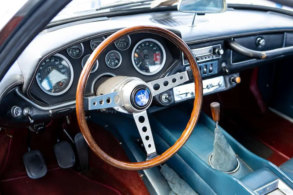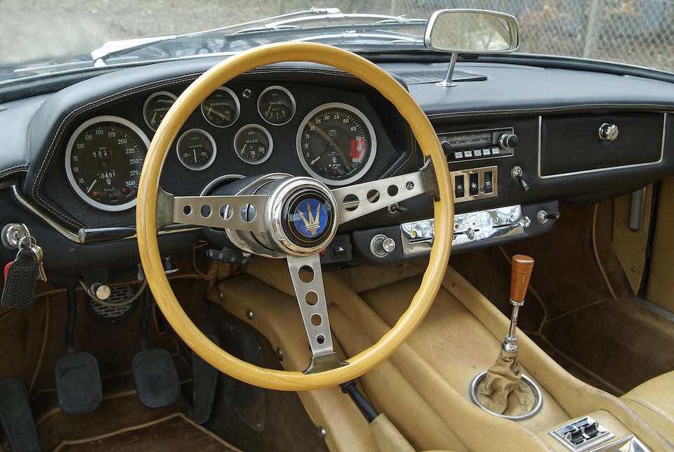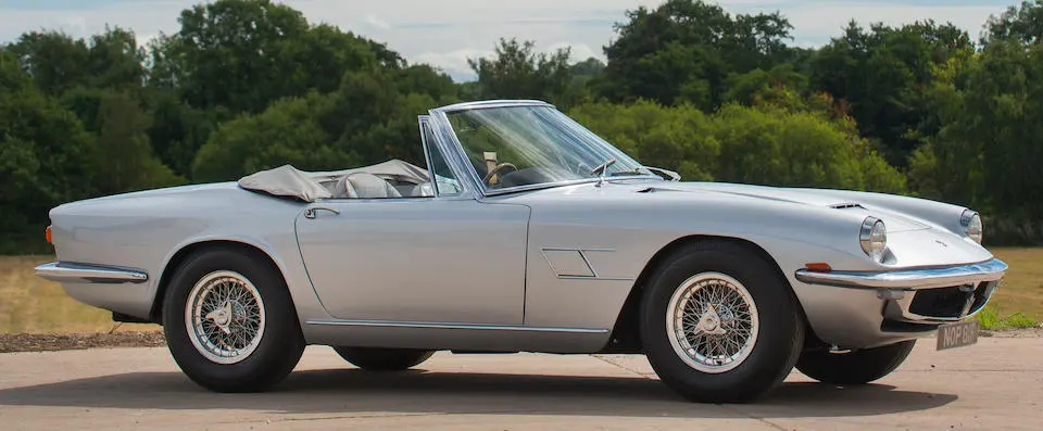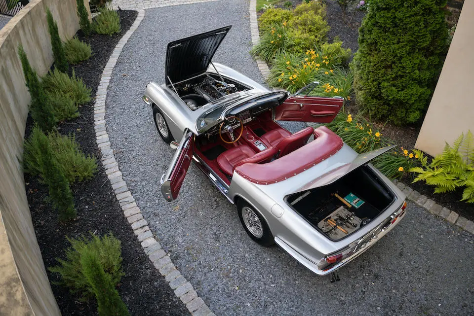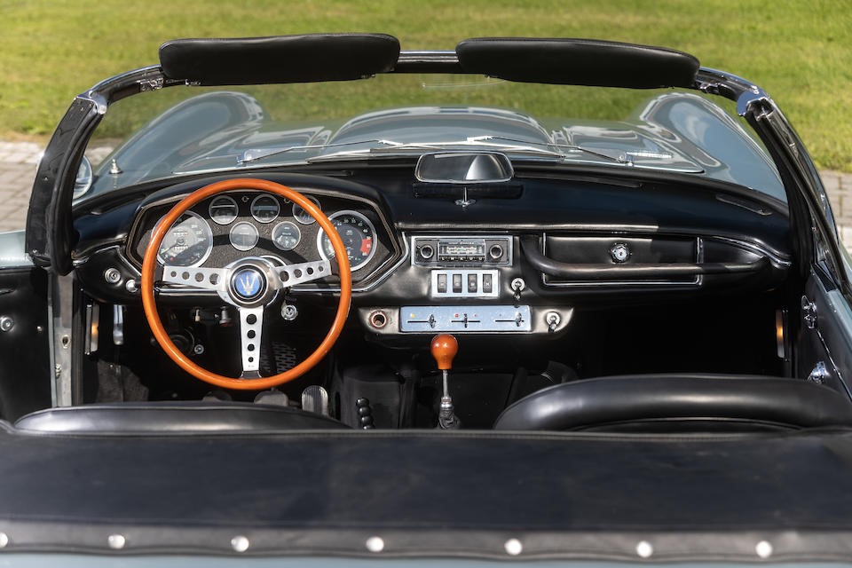 AM109/SA1/691 : 19/12/1967, Mistral 4000 Spyder par Frua, Argento Auteuil Metalizzato, cuir Marrone.