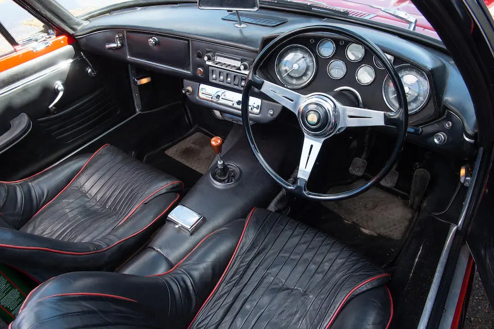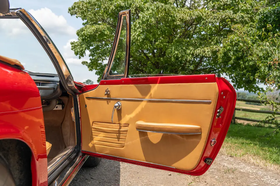 AM109/SA1 709 : 04/1968, Mistral 4000 Spyder, hardtop, Oro Longchamp, cuir rouge.
