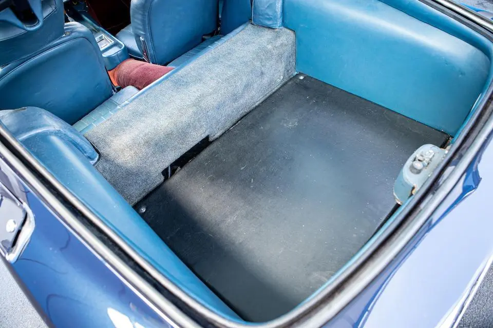 AM 109/S/A1/605 : 1966, 3,7l, Spider, bleu métallisé, cuir bleu, tableau de bord cuir bleu,