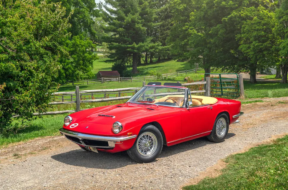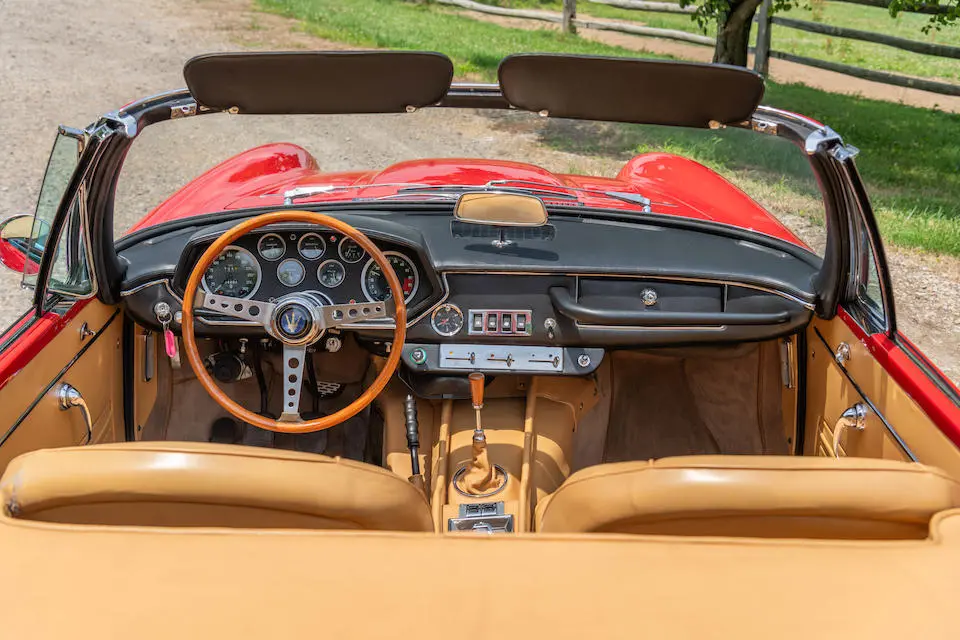 AM109/S/711 : 1968, Mistral 3,7 l Spyder, jantes à rayons, Rosso Cordova, cuir beige.