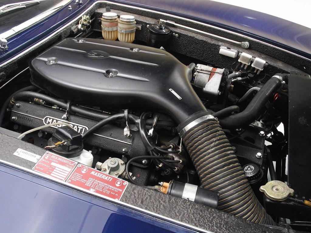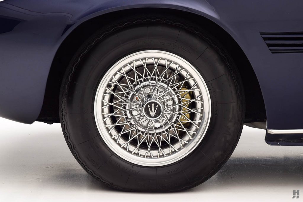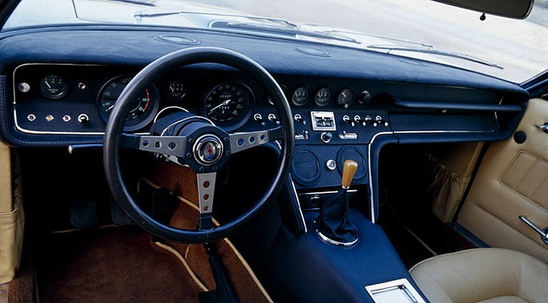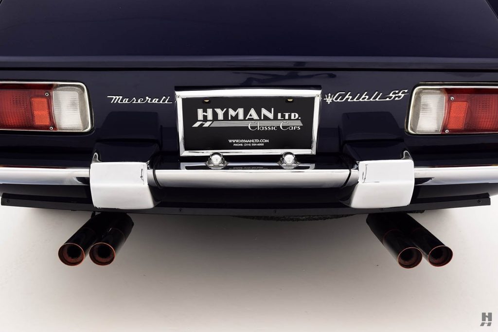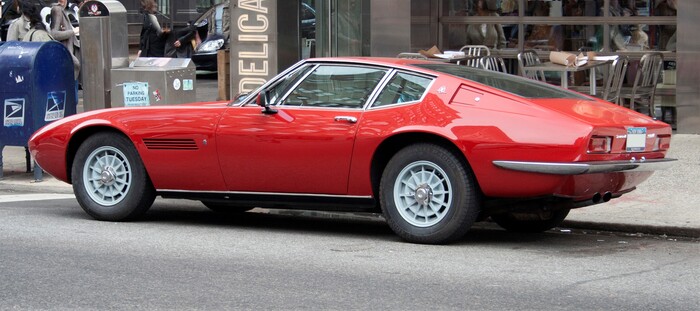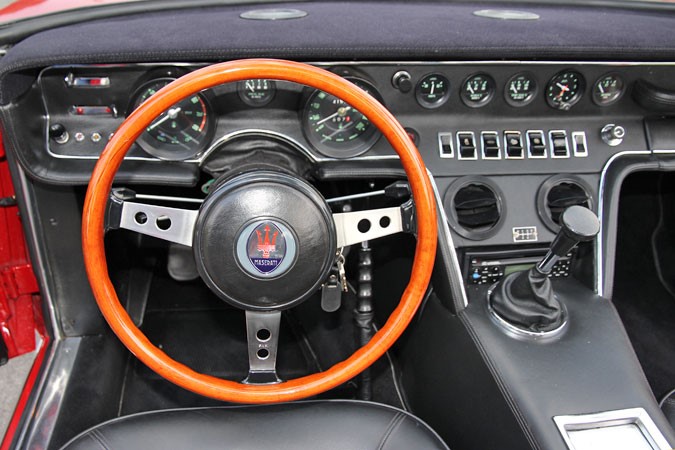 Coupé dessiné par Ghia.Caisse soudée sur le châssis. Présentée comme une 2 places, la Ghibli reçoit deux petites places d’appoint (un coussin sans rembourrage dorsal) lui permettant de revendiquer l’appellation 2+2.