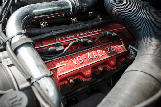 1987 : Nouveau moteur V6 2,8 litres avec culasse double arbre à cames en tête par banc de cylindres et 4 soupapes par cylindre, 250 chevaux DIN (279 sans catalyseur), suralimenté par 2 turbocompresseurs IHI refroidis par eau avec échangeurs air/air. Ce bloc prend place sous le capot des 222 4v (coupé 2 portes)
