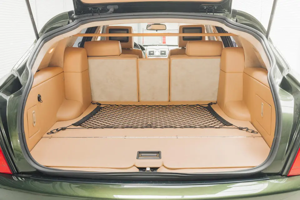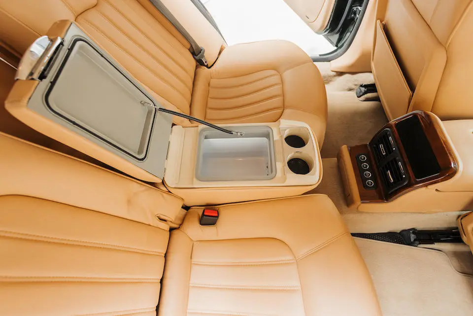 La voiture dispose de 2 sièges arrières rabattables, un réfrigérateur et 2 écrans de 7 pouces dans le dos des appuie-tête avant.