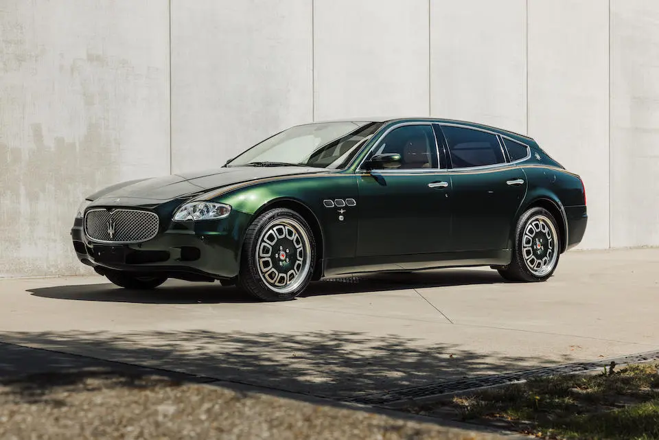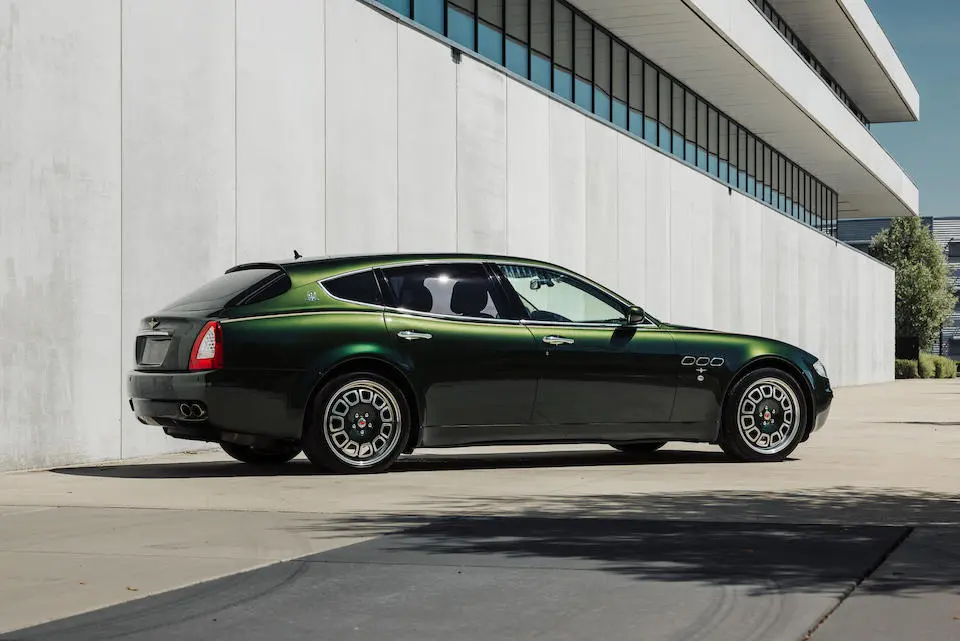 ZAMFD39B000036271 : 2009, Quattroporte Shooting Brake Bellagio par Touring Superleggera, ¼, boîte de vitesses automatique ZF, feux arrières des modèles 2010, jantes forgées de 19 pouces Bimétal, filet pour chiens dans la partie arrière, rangements pour 2 paires de fusils, réfrigérateur, sièges arrières réglables et repliables, écrans dans le dos des appuie-têtes avant,  Vert forêt métallisé avec filets or, cuir naturel.