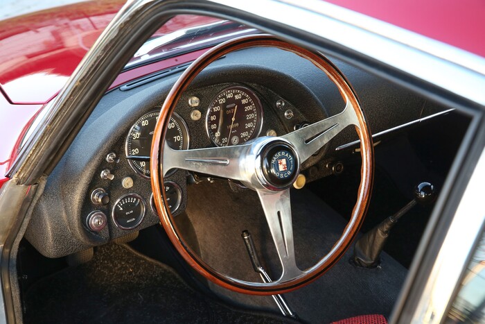 Carrosserie Zagato, berlinette avec toit à double bulle et caisse aluminium pour la plupart des châssis. Poids contenu à 760 kg avec répartition 48,7/51,3 % entre l’avant et l’arrière.