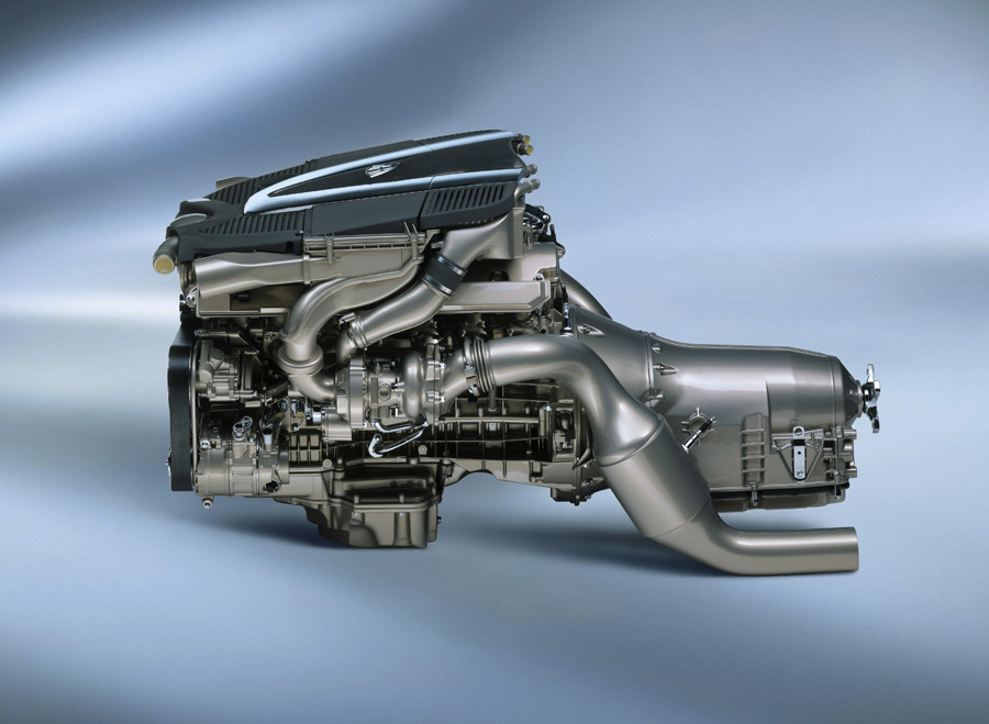 Moteur 12 cylindres en V ouvert à 60° fourni par Mercedes, assemblé manuellement, entièrement en alliage léger.