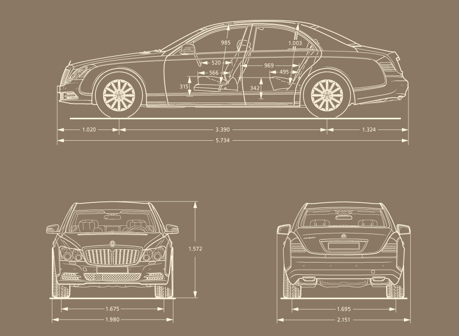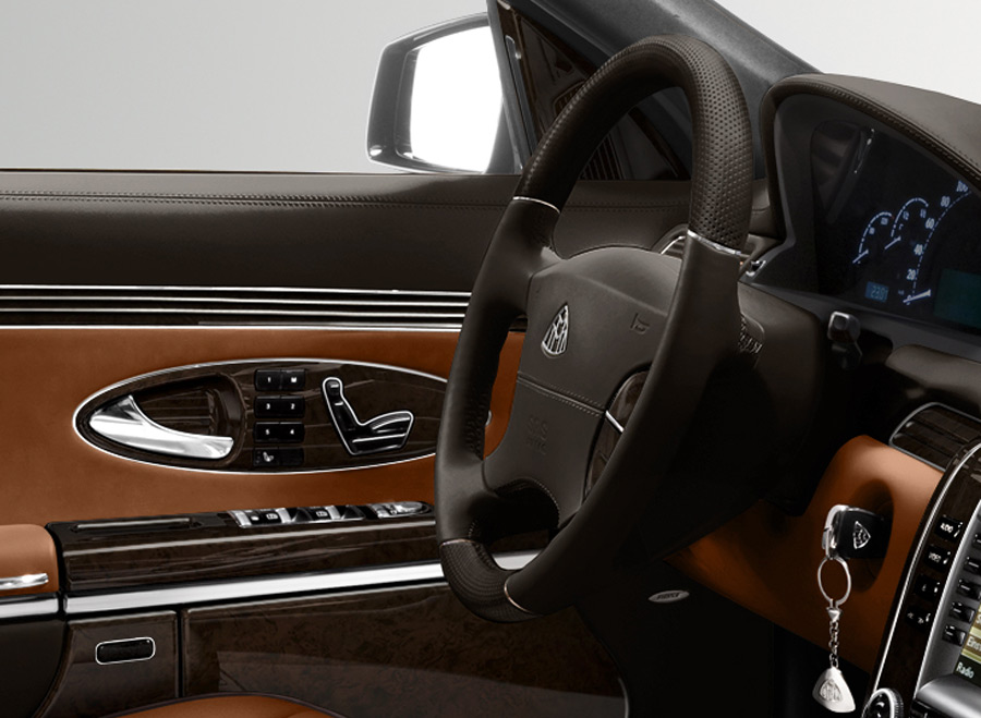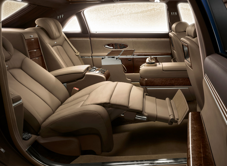 Les optiques des phares bi-xénon reçoivent le monogramme Maybach en référence aux modèles des années trente.