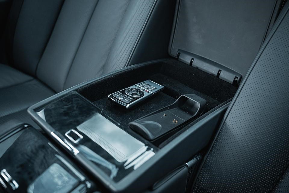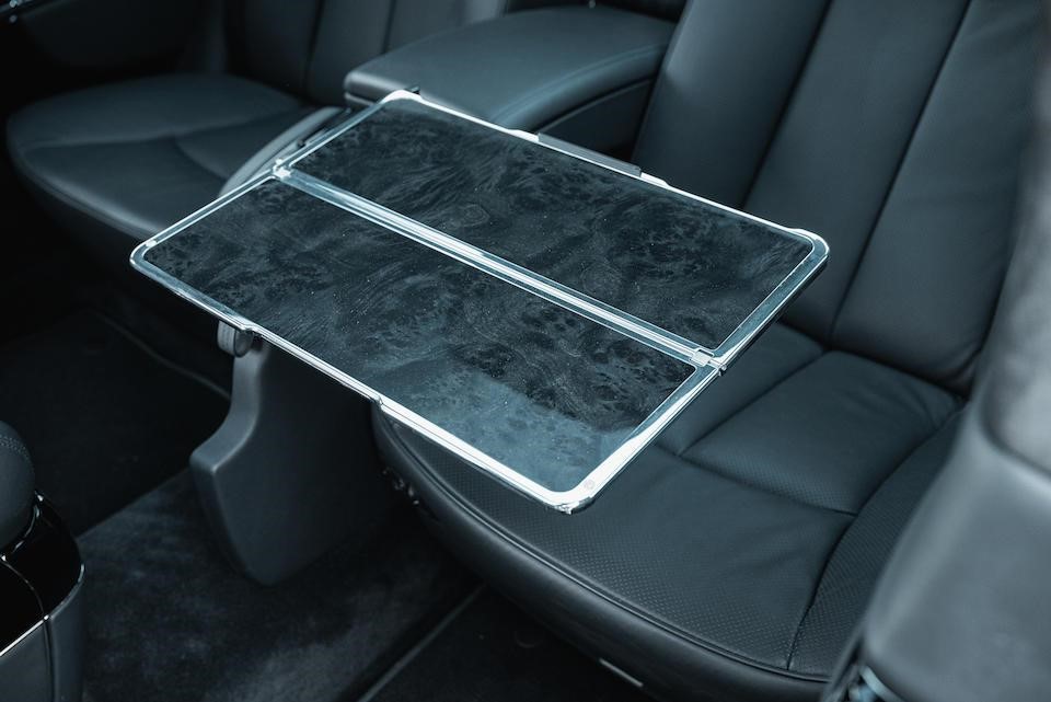 Compartiment arrière avec 2 écrans plats, lecteur DVD, tuner TV, chargeur 6 CD, 2 casques individuels, bar dans la console arrière (option), 2 téléphones mobiles, système de radio satellite Sirius avec abonnement à vie.