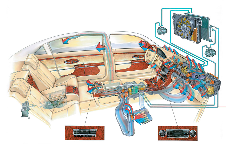 Climatisation séparée avant/arrière délimitant 4 zones avec réglage individuel.