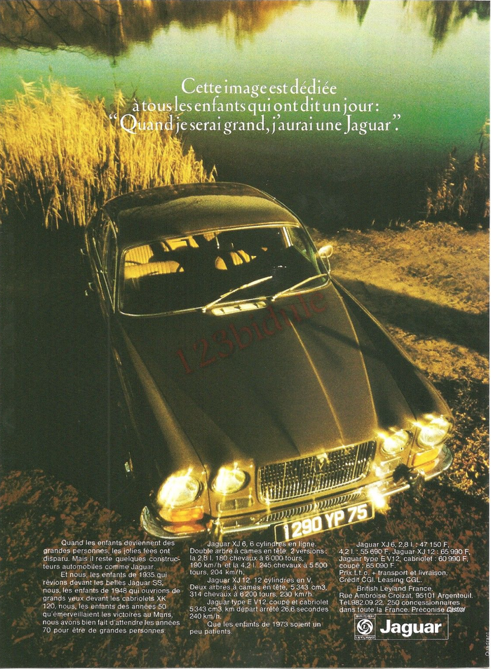 La bagnole, la caisse, la tire, la chignole, la guimbarde, le clou, le char….. Vaste programme. Moi je suis tombé dedans vers les 12 ans en regardant une publicité Jaguar qui disait « Quand je serai grand j’aurai une Jaguar ». Je suis devenu grand (enfin plus vieux) et j’ai eu une puis des Jaguar.